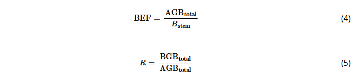 For these reasons, fixed or default values for BEF and R should be discouraged in locations with different climates and growing conditions, avoiding biased estimates for carbon accounting and greenhouse gas inventories. To further advance the current state of the art of BEF and R, we suggest modeling focused on climate variables to deepen our knowledge of their spatial patterns facing future climate change.
