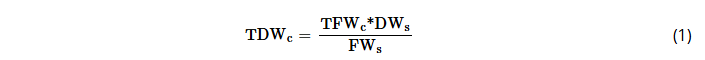 where TDWc is the total dry weight of each tree component (stem, branches, foliage, roots), TFWc is the total fresh weight of each tree component, DWs is the dry weight of each sample, and FWs is the fresh weight of each sample.